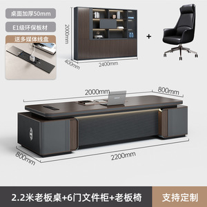2.2米双柜老板桌+老板椅+六门书柜(升级烤漆款)