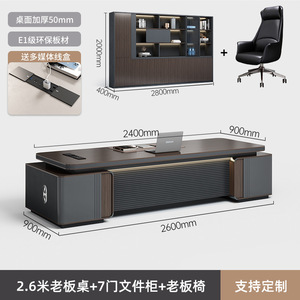 2.6米双柜老板桌+老板椅+七门书柜(升级烤漆款)