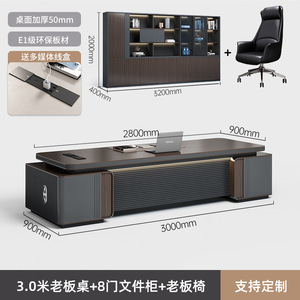 3.0米双柜老板桌+老板椅+八门书柜(升级烤漆款)