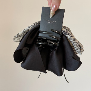 フレンチレトロプリントリボンポニーテールクリップ、エレガントなハーフタイヘアクリップ、絶妙なポニーテールシャークヘアクリップヘッドバンド