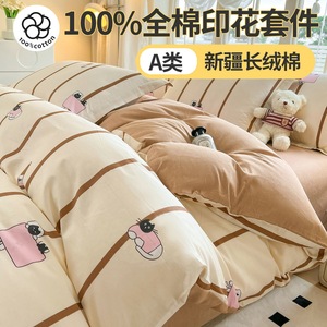 Ye Lai Wanxiang [新疆綿生地、肌に優しく通気性] 2.0m ベッドシーツ 4 点セット [220*240cm 掛け布団カバー + ベッドシーツ + 枕カバー ペア]