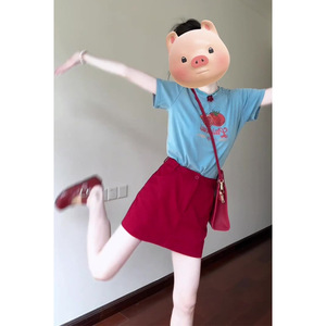 2025 新しい夏の女性のフレンチスタイルラウンドネックプリント半袖 Tシャツトップ多用途ハイウエスト痩身スカート