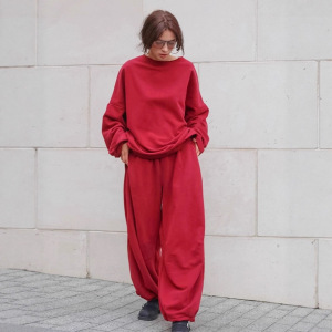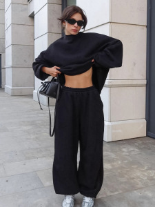 ヨーロッパとアメリカのストリートファッション黒ラウンドネックスウェットシャツスーツ女性のための 2025 秋と冬のスポーツトップスルーズツーピースセット女性用