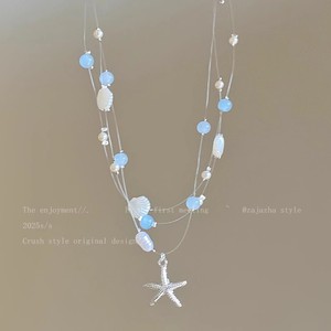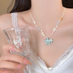 夏日海边多巴胺海星贝壳吊坠项链女度假风时尚锁骨链裙子配饰项链