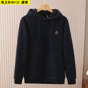 新款海牌剪标雪尼尔卫衣男秋冬季厚款保暖抽绳连帽套头衫男4D122