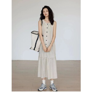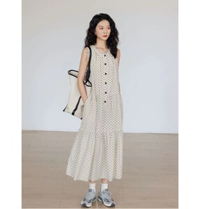 2025新款波点圆领夏季背心裙女无袖宽松慵懒风连衣裙a字裙度假裙