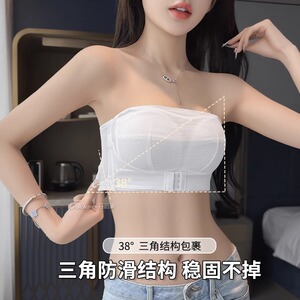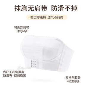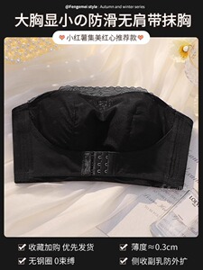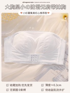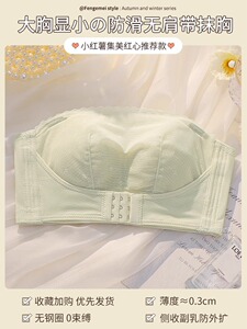 无肩带内衣女防滑大胸显小防下垂全罩杯大码隐形抹胸美背薄款文胸
