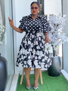 亚马逊欧美外贸跨境印花衬衫大码连衣裙女装新款A字裙非洲速卖通