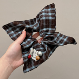 3#牛仔发圈-格子丝带
