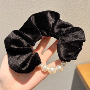 1#黑色丝绒珍珠大肠发圈
