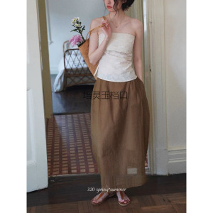 6-in-1「モーニングミスト」フレンチダブルレイヤー微透け感プリーツミドル丈スカート 女性用
