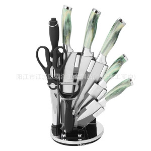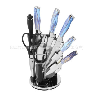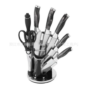工場ホット販売ステンレス鋼包丁ダブル電気メッキアクリル回転ナイフホルダー 9 ピースセットナイフキッチン用品