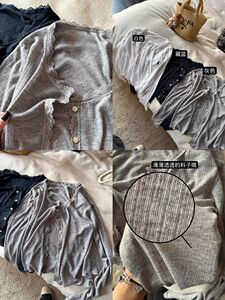 【工場在庫あり】レースステッチレースソフトワックスマスク日焼け止めニットカーディガン軽量ジャケットトップ女性夏