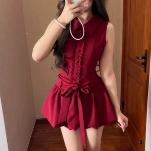 甘いリボンノースリーブフラワーバドドレスレディースサマーミュウスタイル小柄なハイエンド気質ベストドレス