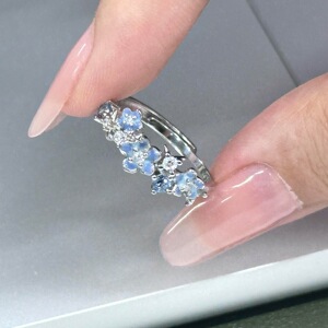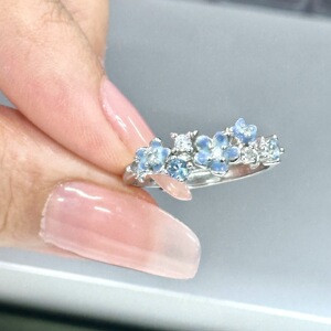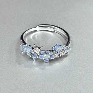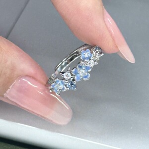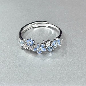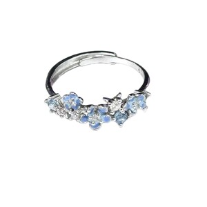 “星辰花戒”蓝色小繁花朵可调节银色戒指女甜美小众食指戒不掉色