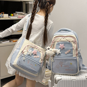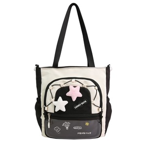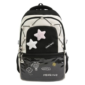 インス風のコントラストカラーのスクールバッグ、可愛い星柄の大容量、女子学生向けの万能リュックサック、中学生・高校生向けのバックパック