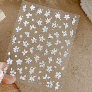 新しいエンボス加工五弁花ネイルアートステッカーインターネットセレブ純白手描きシンプルな小さな花柄ネイルデカール粘着裏地付き