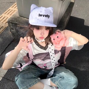 原创星星lovely可爱猫猫耳朵卡通动漫平檐可调节帽夏季百搭帽子