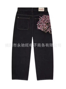 パーソナライズされたアメリカの貿易新しいスタイルのパーソナライズされたホワイトジーンズ日本のトレンディなルーズカジュアルハイストリートパンツユニセックス