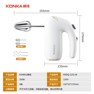 Konka エッグビーター電動家庭用クリームミキサーケーキホイッパーハンドヘルドミニエッグビーター卸売