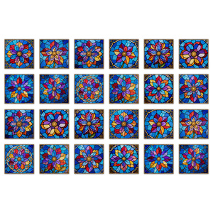 24片欧式花砖墙贴自粘厨房浴室装饰瓷砖贴纸亮面水晶墙壁贴花
