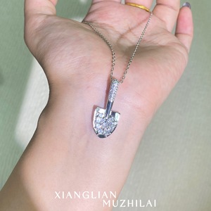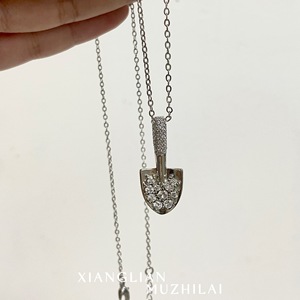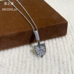 高级感小铲子锆石镶嵌吊坠项链女轻奢爆闪小众设计气质百搭锁骨链