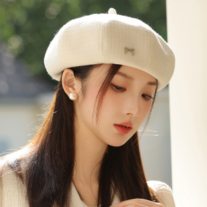 女性用春秋帽子、レトロな英国風ベレー帽、頭囲が大きい、顔が見える小さなペインターハット、万能リボンメッセンジャーハット