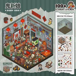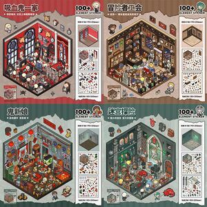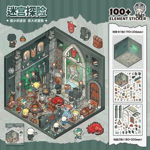 冒険をテーマにしたミニチュアシーンステッカーコレクション 3D スタッキングキャビンステッカー造園ステッカー減圧立体手作り