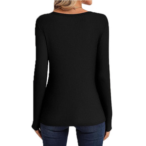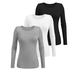 ヨーロッパとアメリカの女性のカジュアル、快適で多用途なラウンドネック長袖Tシャツ、春と秋のマルチカラーのタイトなリブボトムシャツトップ