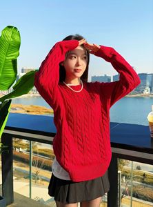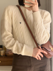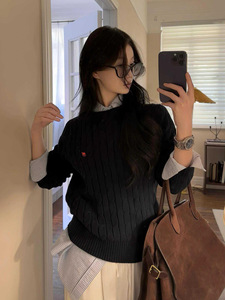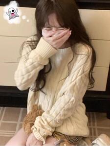 【绒绒暖阳】韩版慵懒宽松长袖针织衫女圆领秋冬刺绣编织麻花毛衣