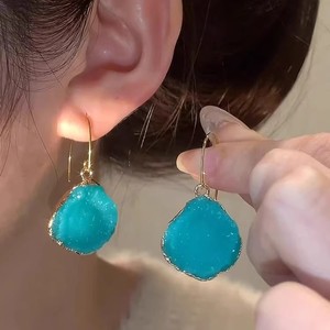 女性用サマーブルーティアーズ不規則イヤリング、軽い高級感、ハイエンドイヤリング、ニッチレトロ多用途イヤリング