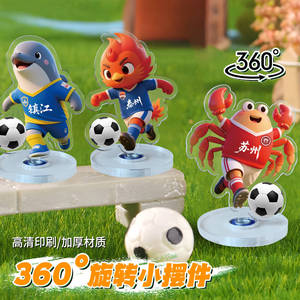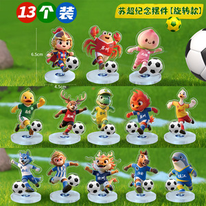 江苏省足球联赛周边创意礼品亚克力旋转摆件苏超城市迷你吉祥队标