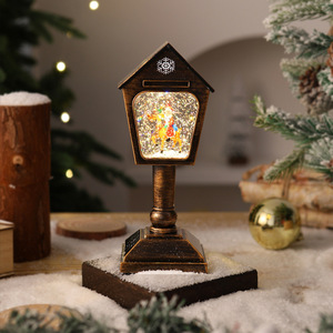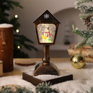 新款圣诞节复古邮箱造型台灯圣诞老人发光音乐水灯装饰桌面摆件