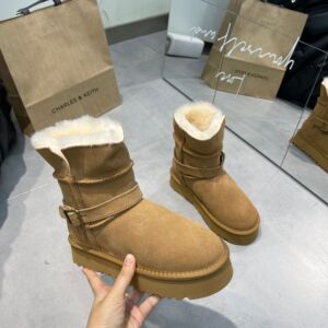 PRUGGI冬季皮带扣长筒雪地靴骑士靴不过膝厚底女增高防滑增高显瘦