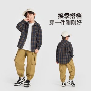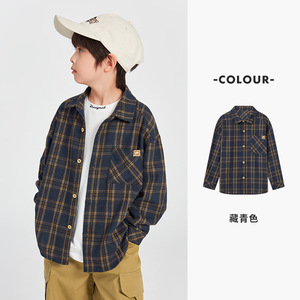 Duojia 子供チェック柄シャツ春と秋のラペルボーイズカジュアルコットン長袖ハンサムシャツ中大子供用