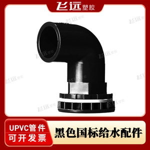 黑色PVC弯头给水管三通接头直接通周转箱鱼缸上下水底滤排水配件