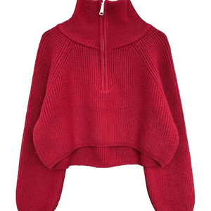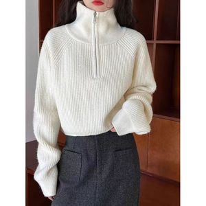 2025秋冬新款韩版宽松立领设计感半拉链短款拉链加厚针织衫毛衣女