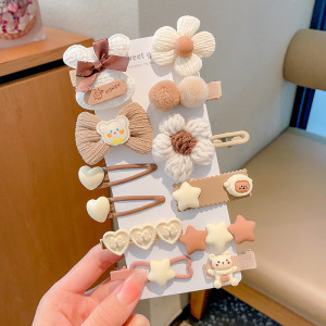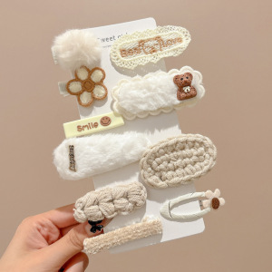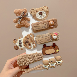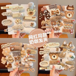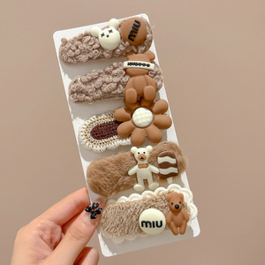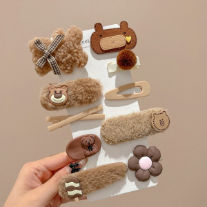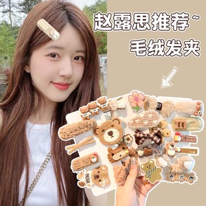 2025新款秋冬毛绒咖啡色刘海夹女侧边碎发夹前额毛发卡头饰发夹