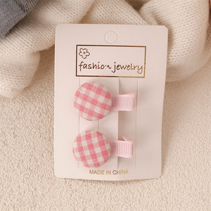 新款儿童布艺格子发圈甜美可爱皮筋头绳侧边碎发前额刘海夹发卡