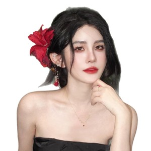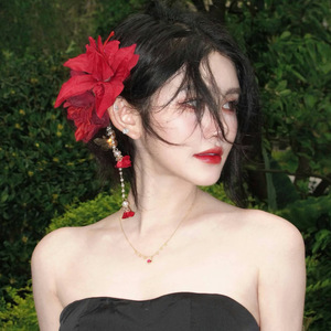 夏日新款时尚单品手工制作酒红色牡丹花流苏发夹小众精致风饰品女