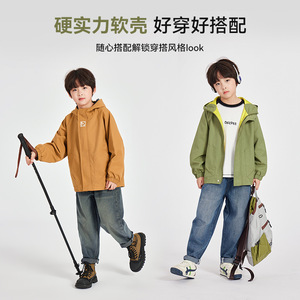 多多家男童外套2025春秋款休闲户外儿童软壳服中大童连帽防风上衣