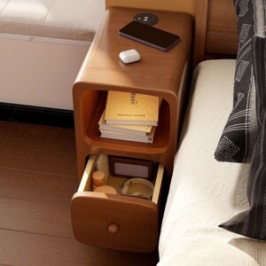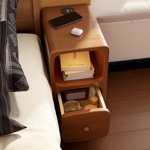 Kajie 寝室収納超狭い隙間収納ラック無垢材大型ベッドサイドテーブルミニ小型超狭いシンプルなベッドサイドテーブル