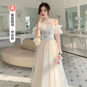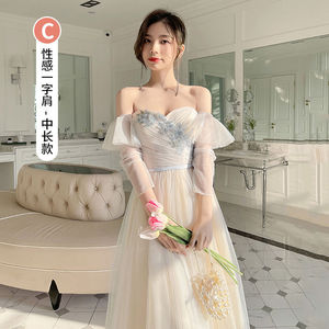 ニッチなウェディングブライズメイドドレス2023冬新作シスターグループブライズメイドドレス妖精気質痩身と肉をカバー