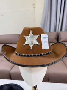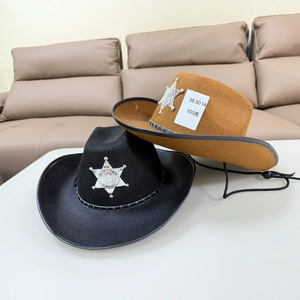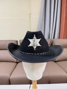 万圣节复古西部牛仔帽五星徽章帽表演道具骑士帽骑马旅游遮阳帽
