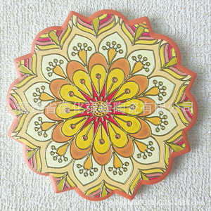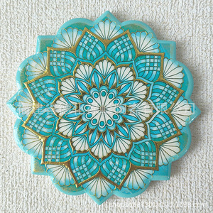 工厂新疆民族风桌面装饰餐垫陶瓷隔热垫曼陀罗杯垫陶瓷烫金杯垫
