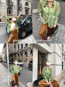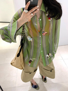 Ouyang Puppy 刺繍入り軽量日焼け止めシャツ女性用夏デザインニッチレトロシャツルーズトップ
