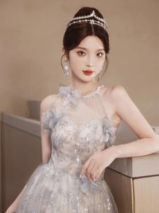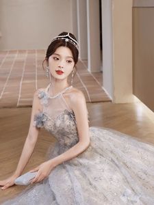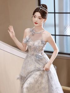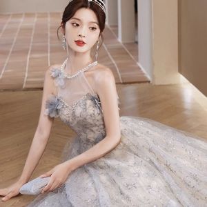 女性のためのホルターネックイブニングドレス 2025 新しい宴会婚約ドレスドレッシングローブ気質社交界のホスト誕生日ドレス