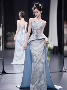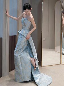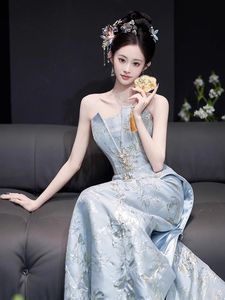 ライト高級ニッチイブニングドレス女性のための 2025 新しい婚約宴会ブライダルテクスチャ中国スタイルのドレッシングガウン