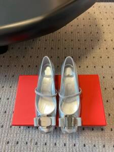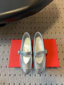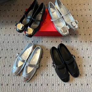 东莞工厂F家新款圆头一字带浅口单鞋复古银色平底玛丽珍鞋女鞋