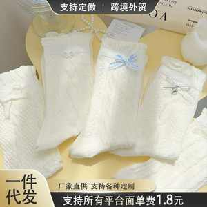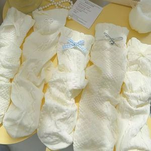新しい蝶結びパイルソックスレディースミッドカーフソックスカレッジスタイル春夏薄いイントレンディな白バレエソックス